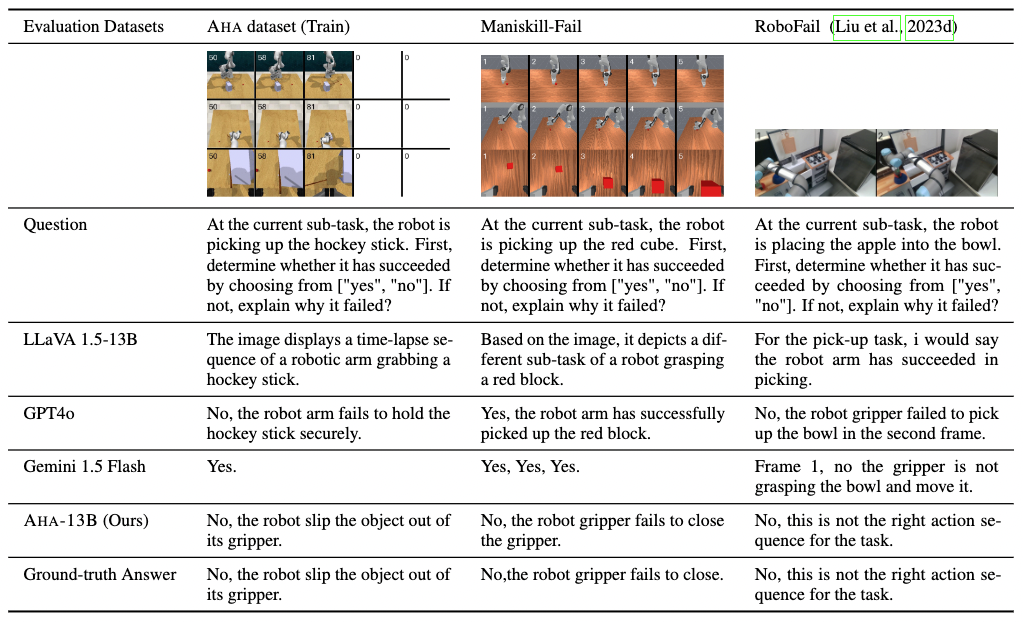 AHA generalizes failure reasoning across embodiments, unseen domains, and novel tasks.